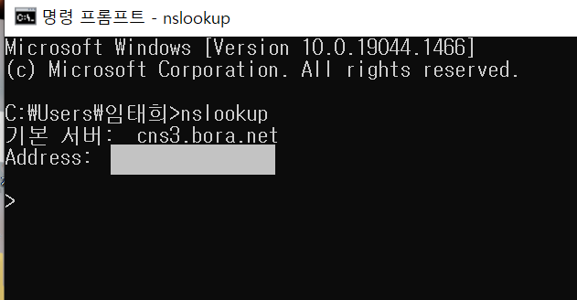 인터넷 사용자가 실제 쓰는 DNS 서버는 ISP(통신사) DNS 서버로 현재 자신의 PC에서 기본적으로 사용 중인 DNS 서버의 이름과 IP 주소를 명령 프롬프트 창에서 nslookup이라는 명령어로 확인할 수 있습니다.