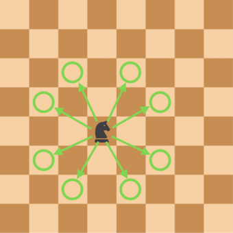 체스에서 나이트(knight)는 아래 그림과 같이 동그라미로 표시된 8개의 방향중 한 곳으로 한 번에 이동이 가능합니다.
