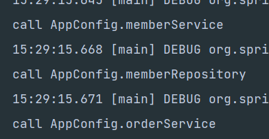 이 출력 결과를 통해서 MemberRepository가 총 3번 호출된 것을 알 수 있습니다. 1번은 @Bean에 의해 스프링 컨테이너에 등록하기 위해서이고, 2번은 각각 memberRepository()를 호출하면서 발생한 코드입니다.