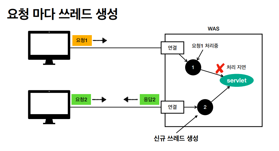 하지만 요청마다 스레드를 생성하는 것은 장단점이 있습니다.