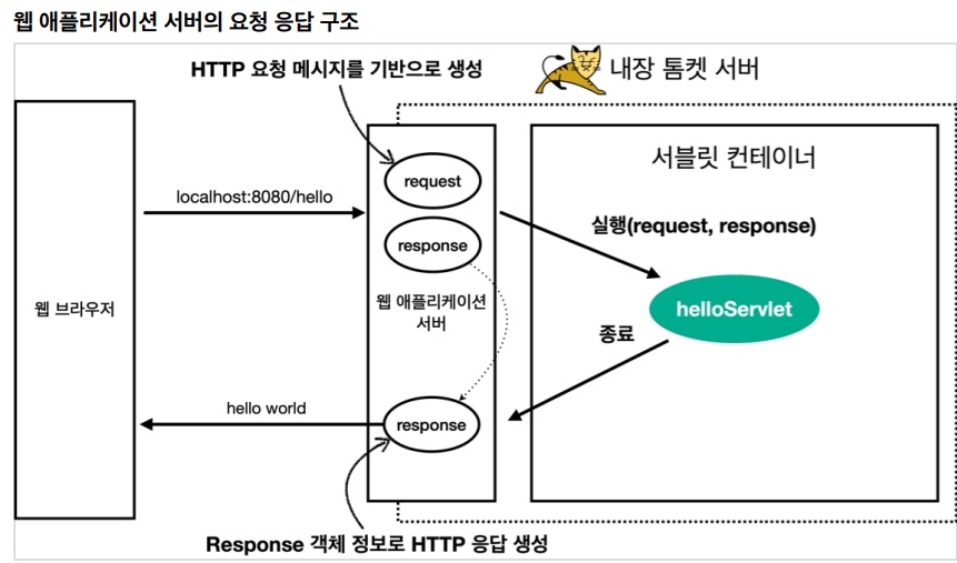 그리고 http request가 오면 내장 톰캣 서버가 request 객체와 response객체를 생성해서 was에 넘겨줍니다.