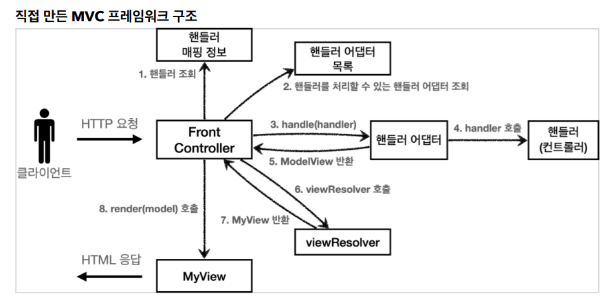 이 인터페이스들만 구현해서 DispatcherServlet에 등록하면 여러분만의 컨트롤러를 만들 수도 있습니다.