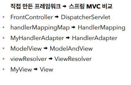 안녕하세요 이번 포스팅은 저희 그동안 힘겹게 만들었던 프레임워크와 스프링 MVC를 비교해보겠습니다!!