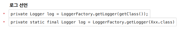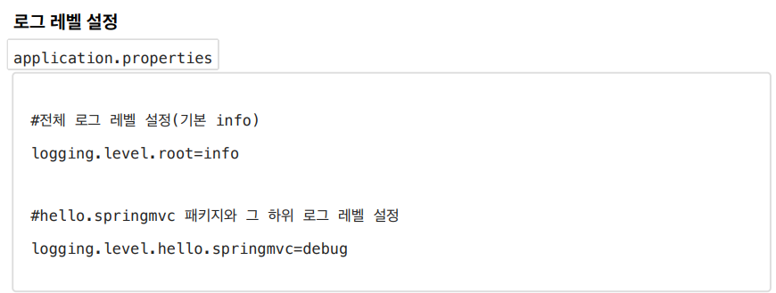 로그 레벨 설정을 변경해서 출력 결과를 얻을 수도 있는데 주로 개발 서버는 debug로 출력하고 운영 서버는 info로 출력한다고 합니다.